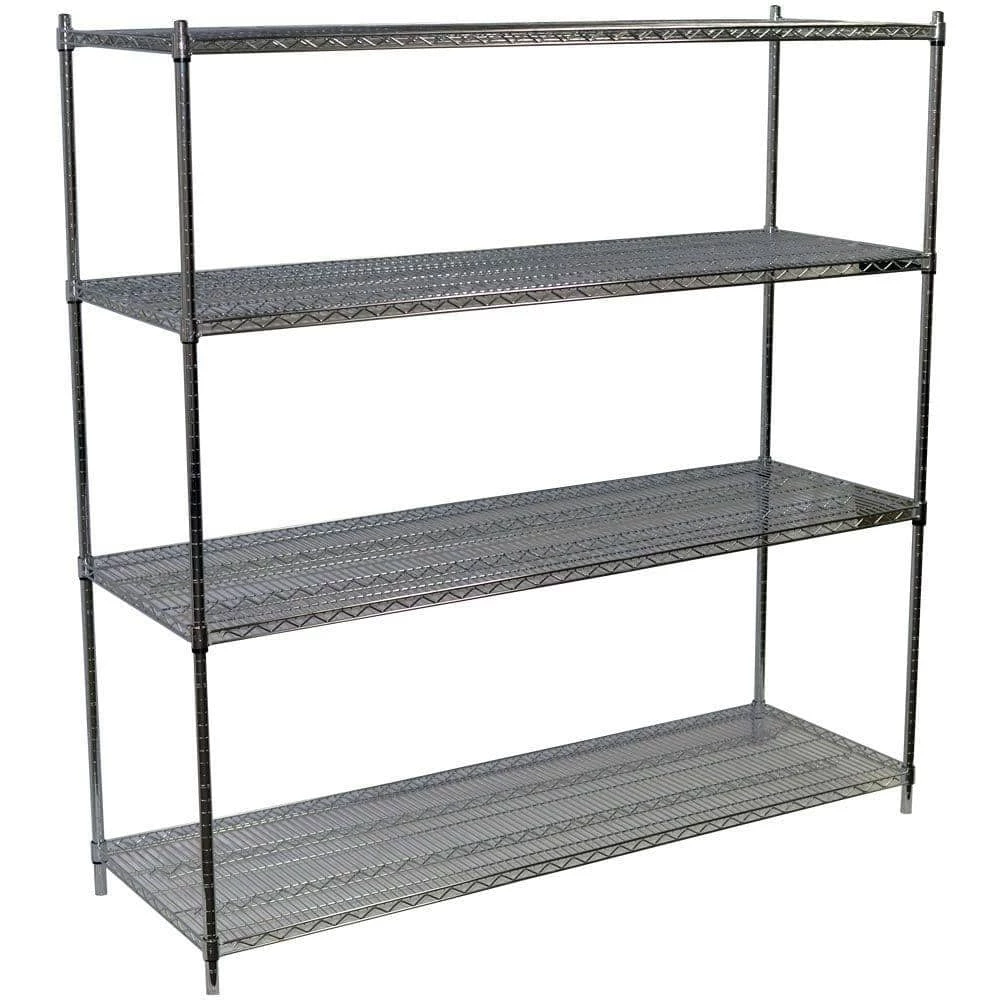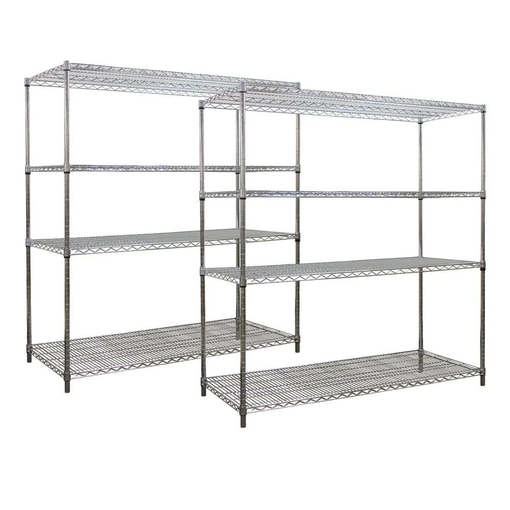 The Storage Concepts 4-Shelf Chrome Wire Storage unit is perfect for the kitchen, office and other dry environments. Certified by NSF International, the high-quality chrome finish is very attractive and durable. The open wire construction reduces dust build up and allows for air and light penetration. These shelving units are easy to assemble with no tools required, and shelves can be aligned at 1 in. increments. Extra shelves are also available for purchase.
