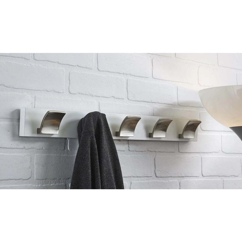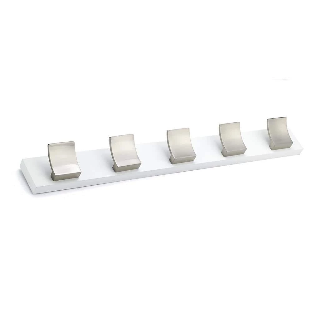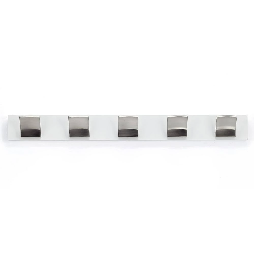 - Hooks have a brushed nickel and white finish