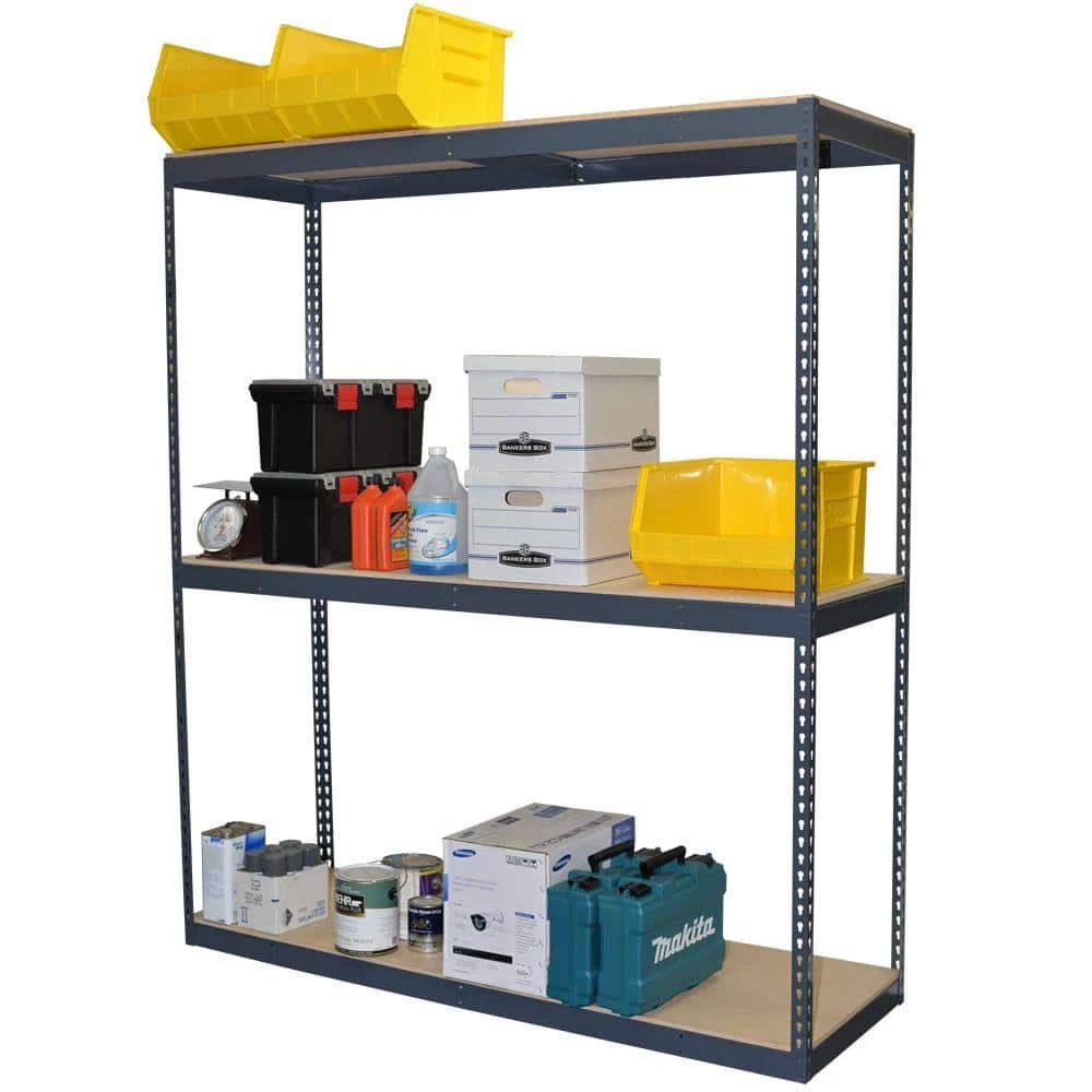 Bulk Storage Shelving offers a low cost way to store heavy and/or bulky items. Boltless design provides for easy assembly without nuts, bolts or shelf clips. No cross braces are necessary which makes these units accessible from all four sides. Available in a variety of sizes and capacities to meet your specific requirements. Steel color: Powder coated gray. All units come complete with 1/2 in. particle board decking.