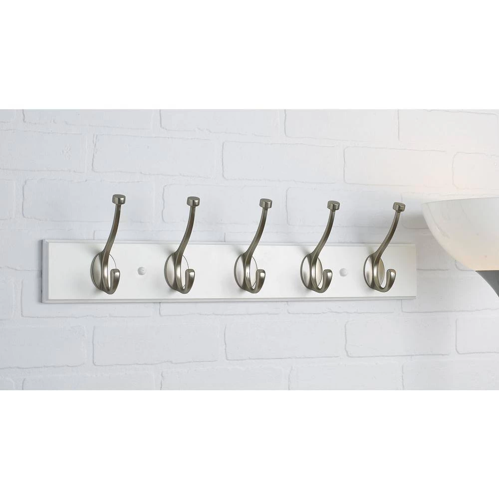 - Hooks have a mocha and brushed nickel finish