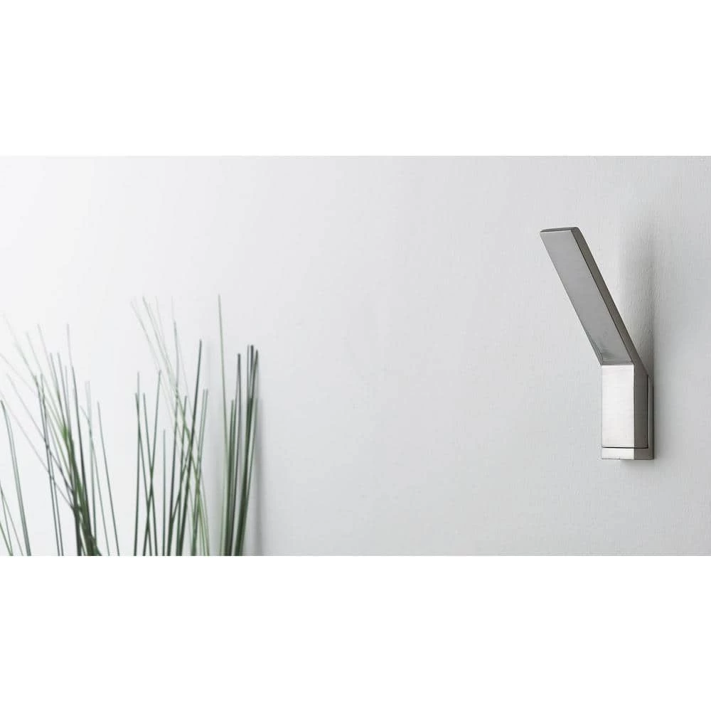 This single hook will optimize the clean lines of your contemporary theme. Smooth and simple, it blends discreetly with your other design elements. Mounting hardware is included for an easy installation.