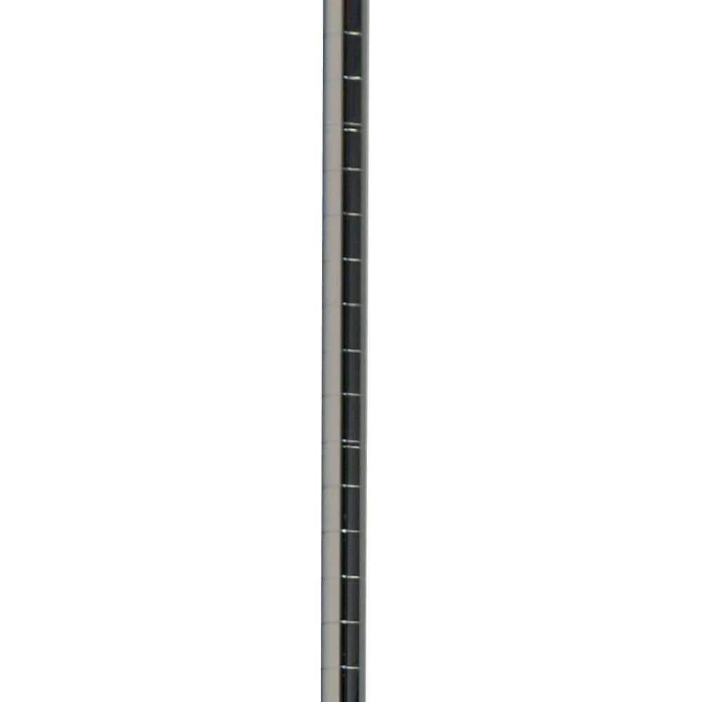 As part of the Storage Concepts wire shelving collection, these stationary shelving posts ship with an attached leveling foot that easily adjusts to accommodate uneven surfaces. Each shelving post is NSF Listed for use only in dry storage and heated environments. It’s made of a durable, chrome plated metal with a clear epoxy coating. Post for use with standard wire shelves. Note: This item is stationary and is not designed for use with casters.